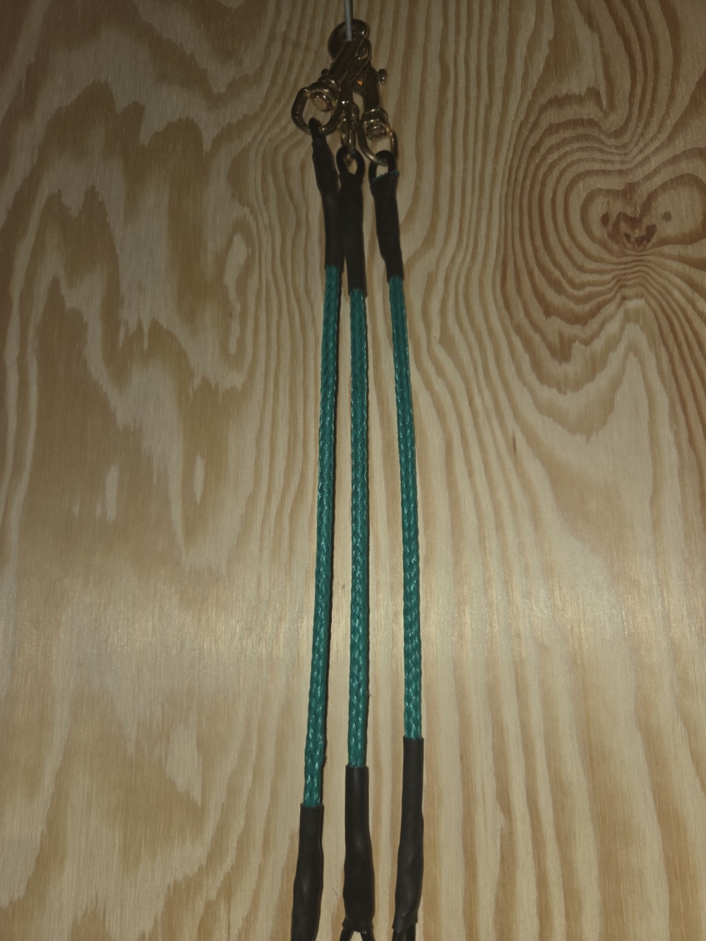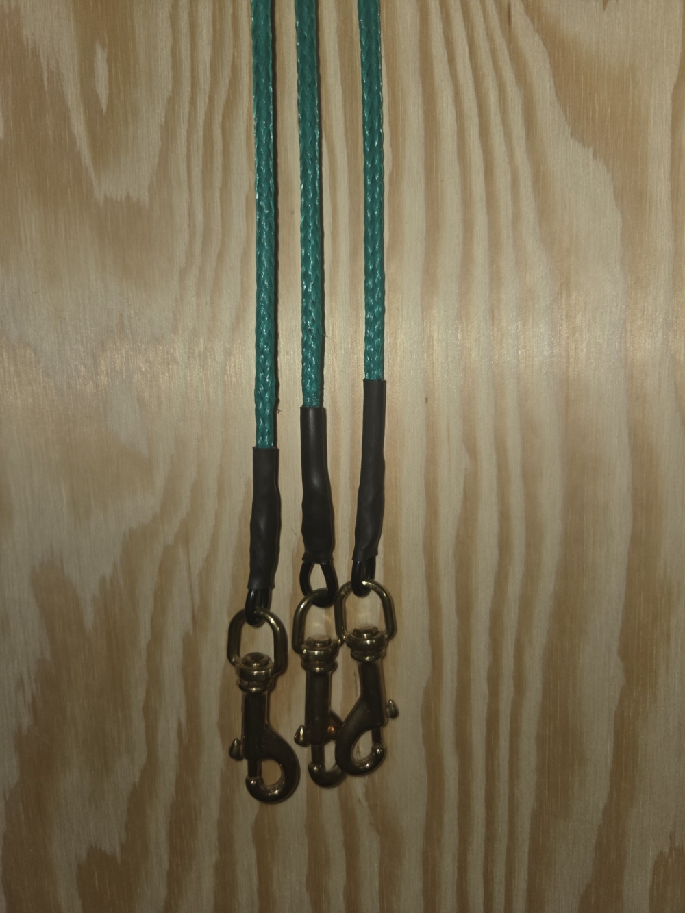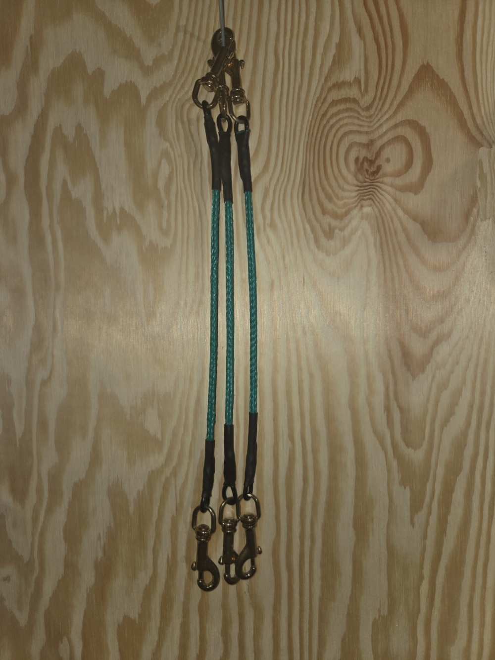 Nakkeline i 3mm plastet wire. 78mm Bronsekrok i den ene enden og nylonkrok i den andre. Disse har plastkrok i ene enden av sikkerhetsmessige grunner